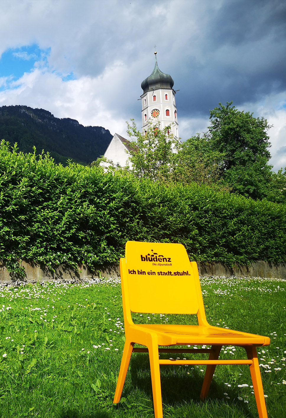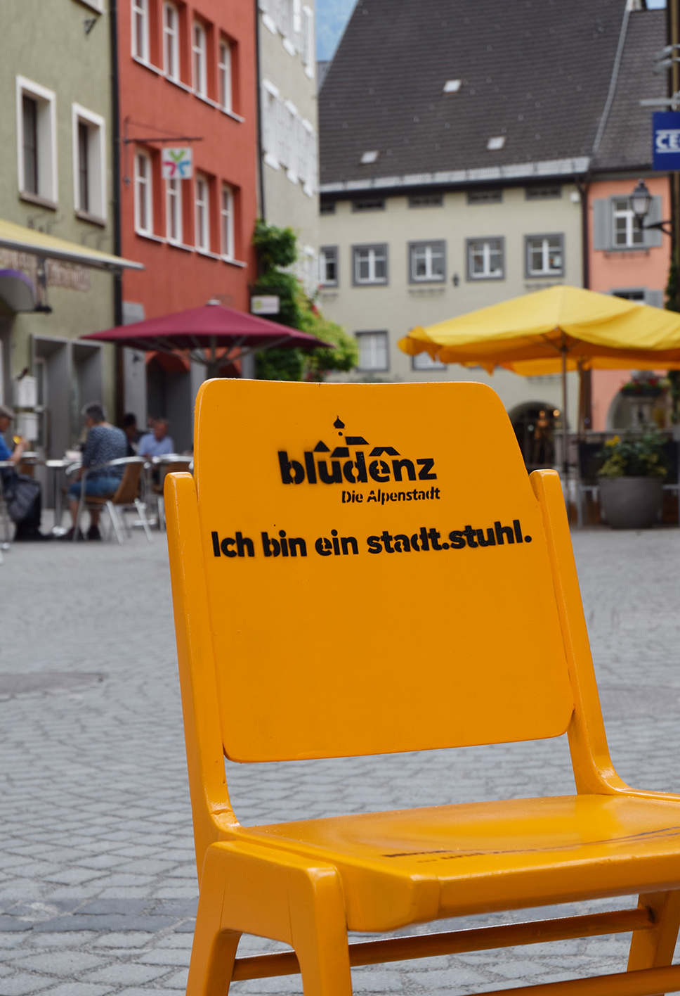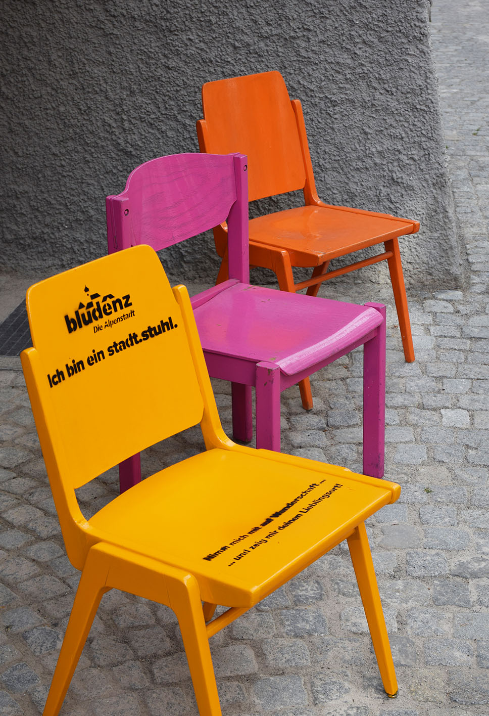 „Nimm Platz!“ Bunte „stadt.stühle“ laden ab Mittwoch, den 10. Juni ein, frischen Wind und vor allem mehr Sitzgelegenheiten in die Bludenzer Innenstadt zu bringen.