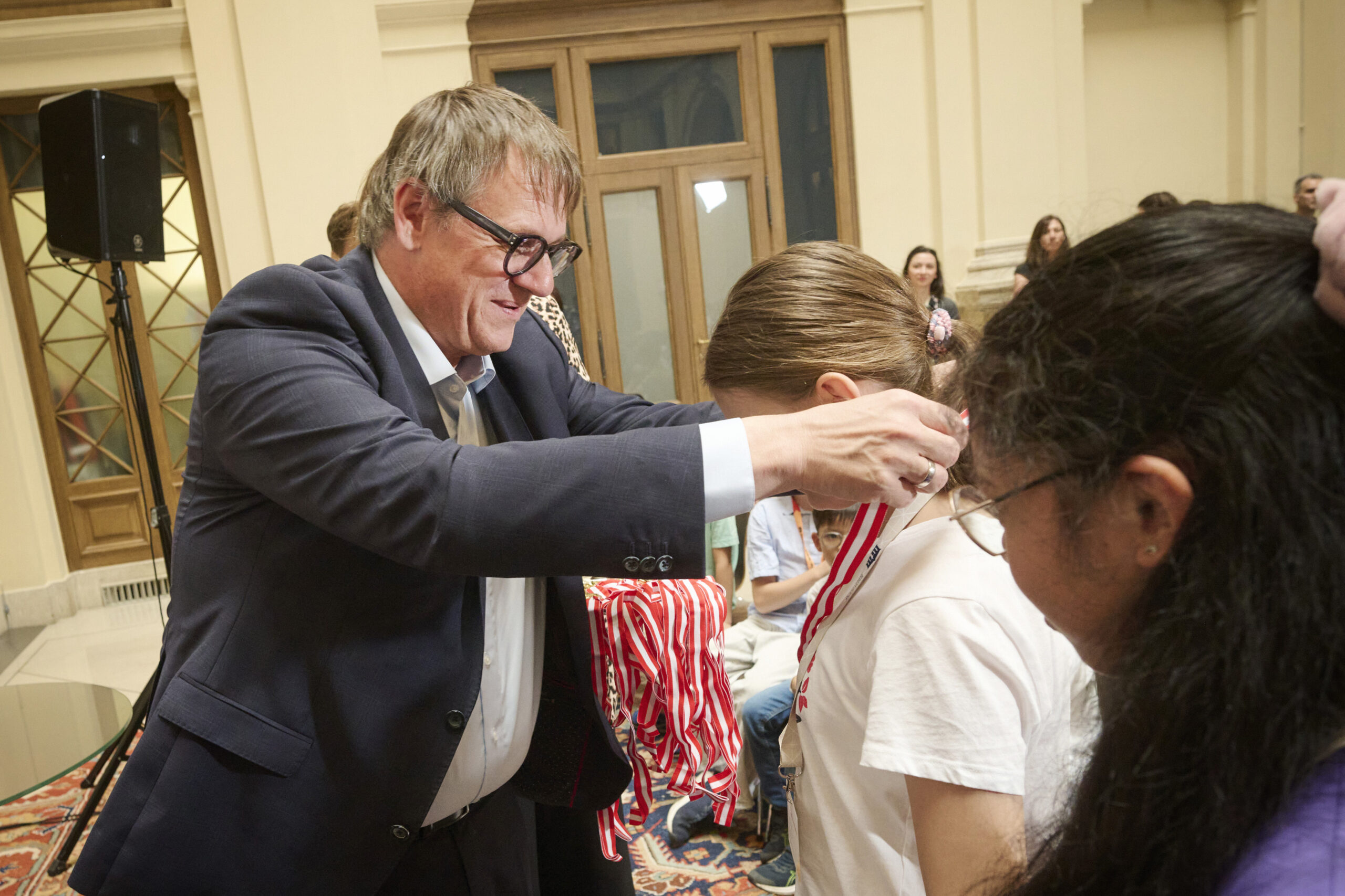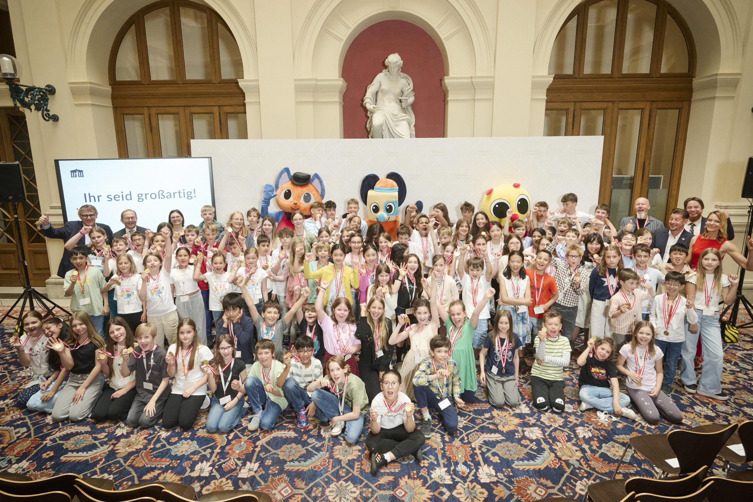 Im historischen Palais Epstein wurden am 16. Juni über 100 Kinder und Jugendliche als DemokratieWERKstatt-Profis ausgezeichnet. Nationalratspräsident Peter Haubner sowie fünf weitere Bundesrätinnen und Bundesräte überreichten den Schülerinnen und Schülern eine Medaille für die erfolgreiche Teilnahme an vier verschiedenen Workshops rund um das Thema „Demokratie“.
